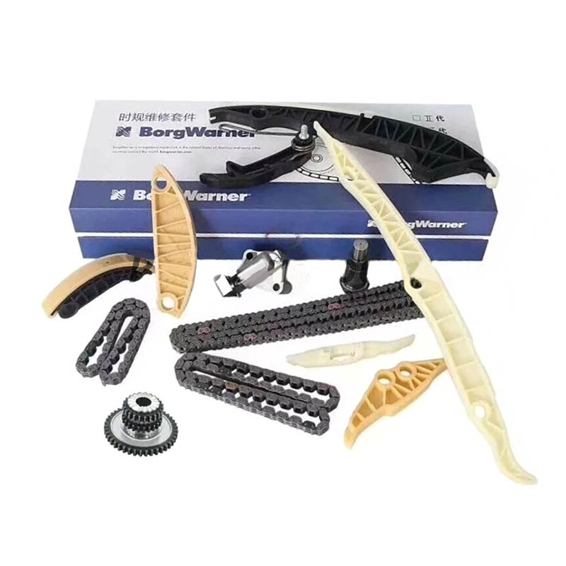 Kamkedjesatsen är en viktig komponent i bilmotorer, som är gjord av metall, kompakt i strukturen, pålitlig i transmissionen och hållbar, vilket säkerställer att motorn öppnar eller stänger ventilerna vid lämplig tidpunkt för att uppnå normala sug- och avgasprocesser. Även om kostnaden är något högre och kräver ytterligare oljesmörjning, är dess underhållskostnad lägre och nästan underhållsfri hela livet. Samtidigt minskar den tysta designen ljudnivåerna, vilket ger en stabilare och effektivare arbetsmiljö för motorn.